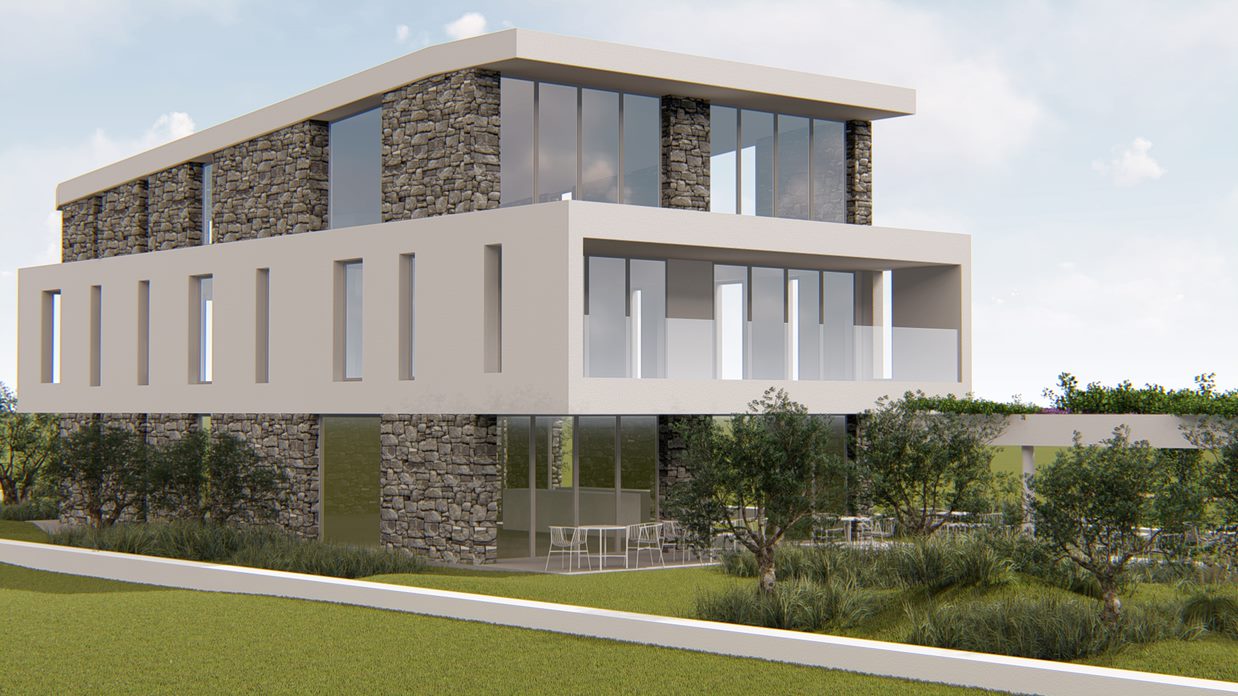 Νέα ισόγεια πετρόκτιστη κατοικία με τμήμα υπογείου και πισίνα στη Χερσόνησο